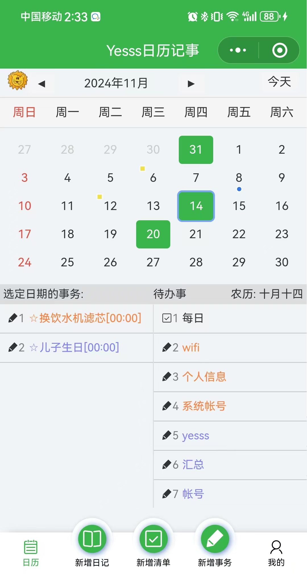 软件名称:Yesss日历记事 - 小程序版